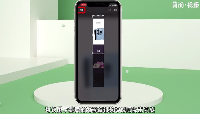 3.在截图界面右上方可以看到整页选项。点击整页查看右图的缩略图。选择左上角的方框图标,在长图中编辑剪切所需内容,然后点击完成。
