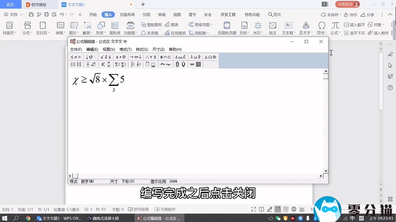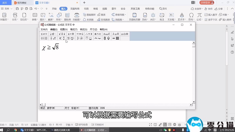 弹出公式编辑器,鼠标光标放在公式命令上可以看到相应的符号元素。可以根据需要写公式。