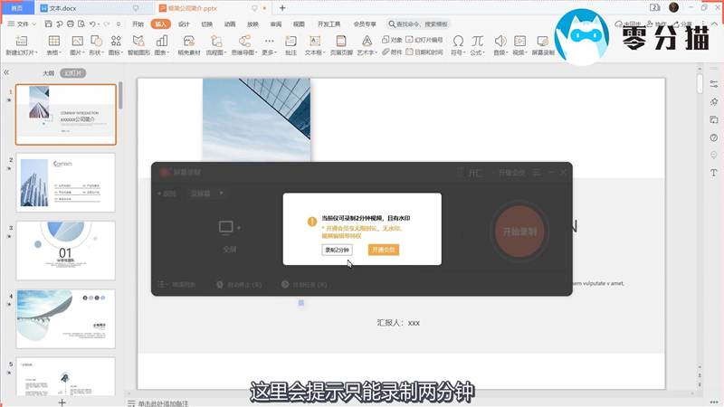2.在弹出的窗口中,点击“开始录制”。这里会提示您只能录制两分钟。
