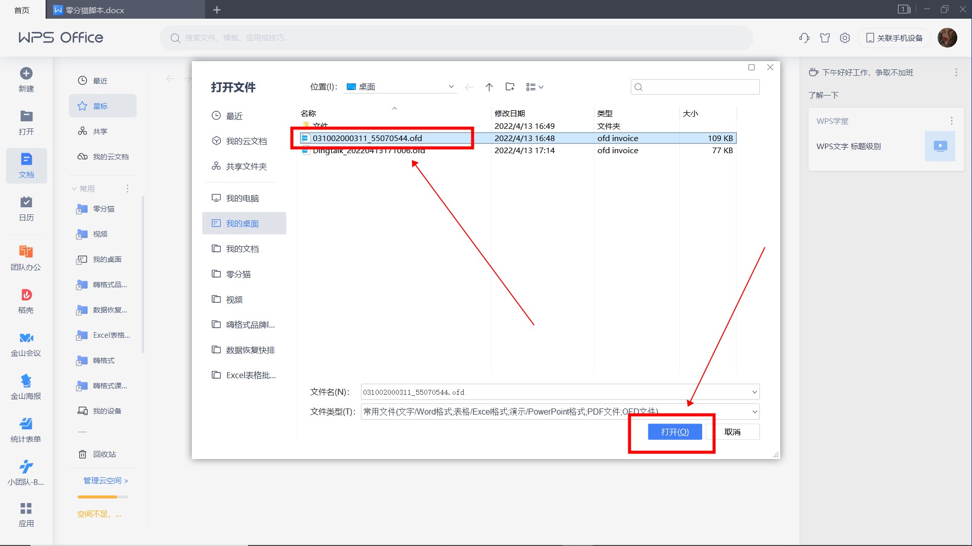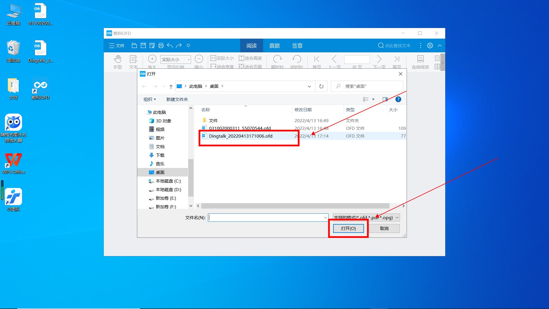 然后选择OFD文件并点击“打开”。