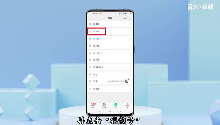 1.打开微信,在页面点击“发现”,然后点击“视频号”进入视频号界面;