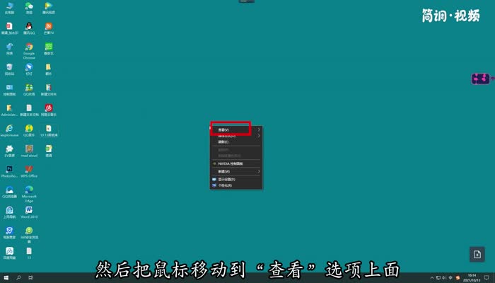 1.右键单击空白桌面,然后将鼠标移动到“查看”选项;