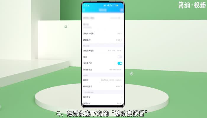 3.进入群聊设置页面后,点击“勿扰消息”后面的按钮打开;