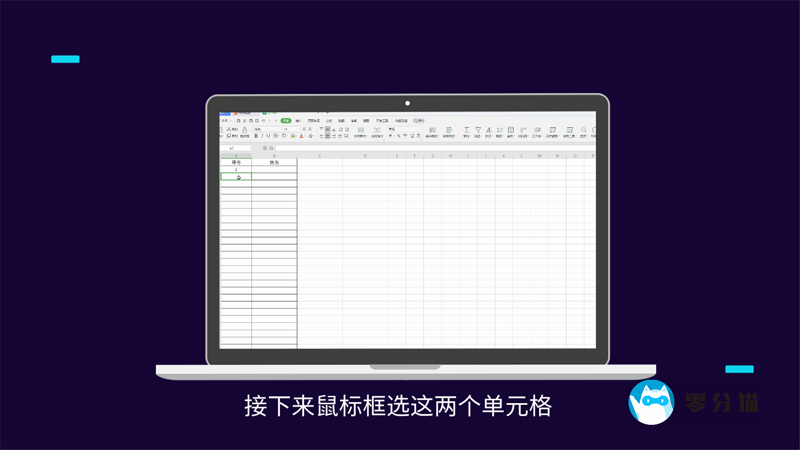 选中单元格,在前两个单元格中输入序号的前两个字,然后用鼠标框选中这两个单元格;