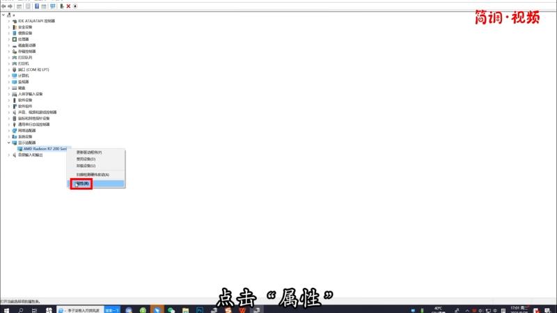 4.右键单击显卡型号,然后单击“属性”查看详细信息。