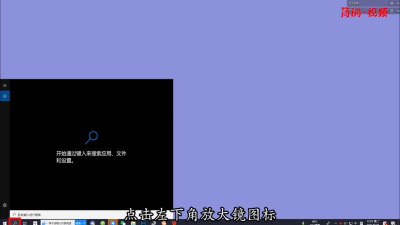 1.打开电脑,点击左下角的放大镜图标,进入搜索界面;