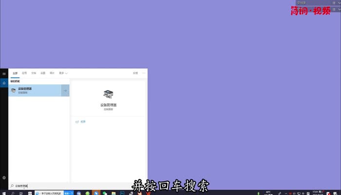 2.在搜索框中输入“设备管理器”,回车搜索,进入设备管理器界面;
