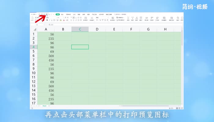 1.打开excel表格,然后点击头部菜单栏中的打印预览图标;