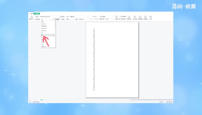 2.在打印预览界面,点击“纸张类型”下拉箭头,勾选“A4”;