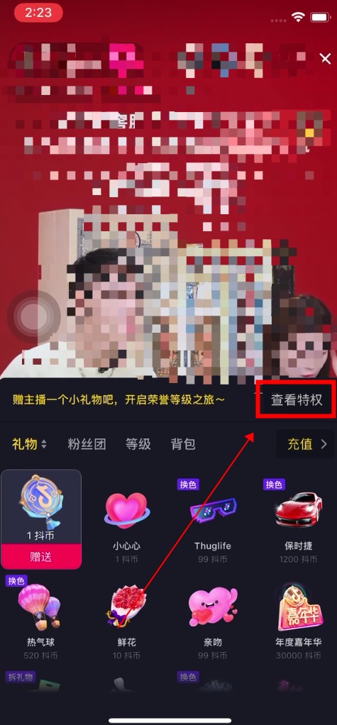 进入Tik Tok现场工作室,点击礼物图标。