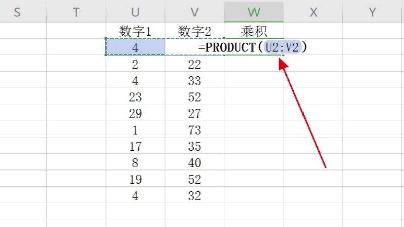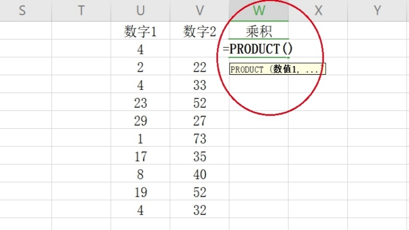 2.在选定的单元格中输入=PRODUCT()函数。