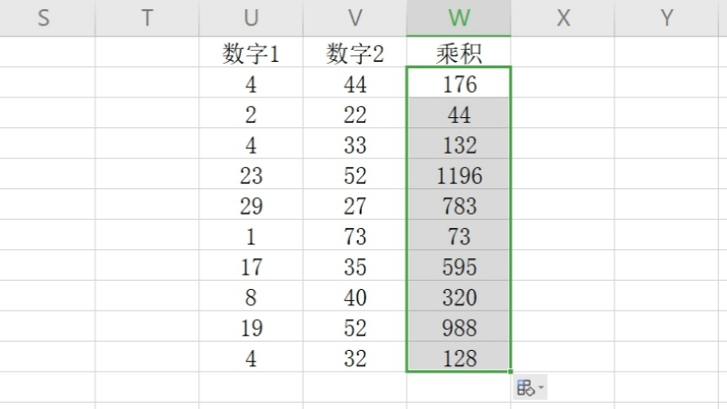 4.单元格选择完成后,按住Enter键得到第一个乘法量,选中第一个单元格双击填充,即可得到所有乘法内容。