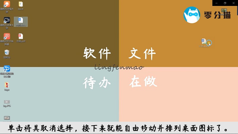 点击取消选择,然后就可以自由移动和排列桌面图标了。
