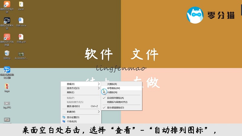 要随机放置桌面图标,需要关闭桌面图标的自动排序功能: