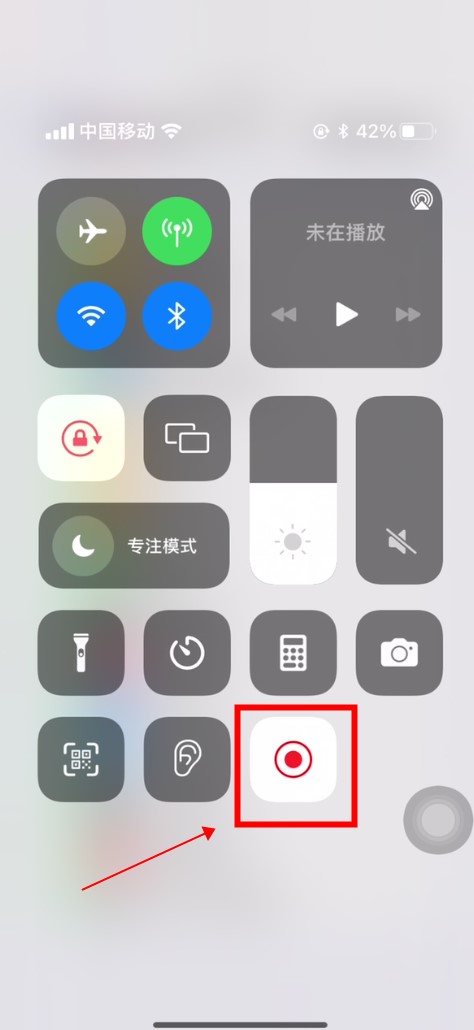 现在下拉控制中心,你可以看到屏幕录制功能,