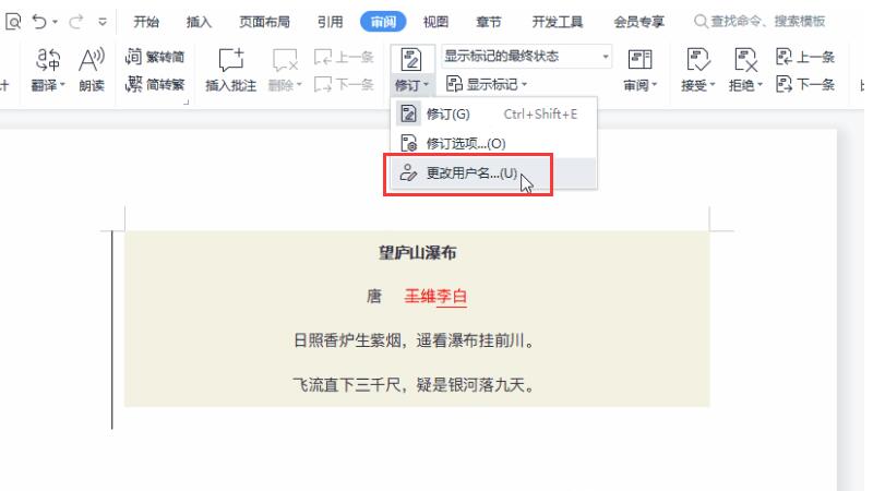 在“审核”中选择“更改用户名”选项,也可以修改用户信息。
