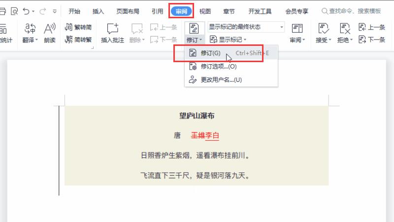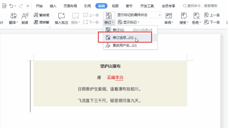 也可以通过在“审阅”中选择修订选项来修改修订样式。