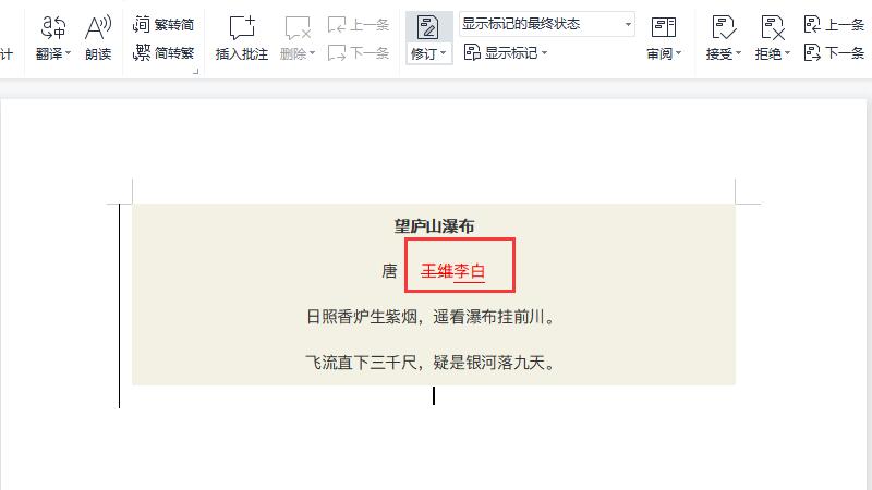 开启修订模式后,修改文档中的内容,修改后的内容会生成一条记录。