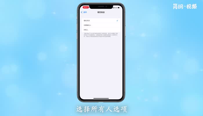苹果可以进入通用设置页面,选择“Airdrop-off”选项,设置每个人都可以drop-off。具体操作如下:
