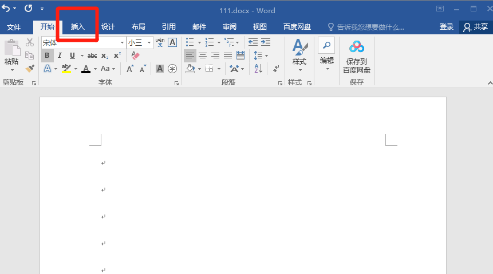 2.在Word文档界面的顶部菜单栏中,单击顶部的插入。