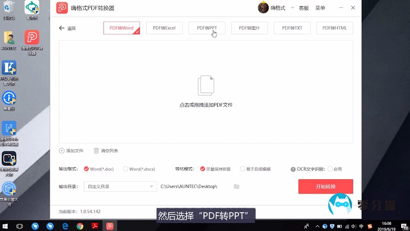 我们点击中间空白区域,添加要转换的PDF,点击开始转换,完成转换。