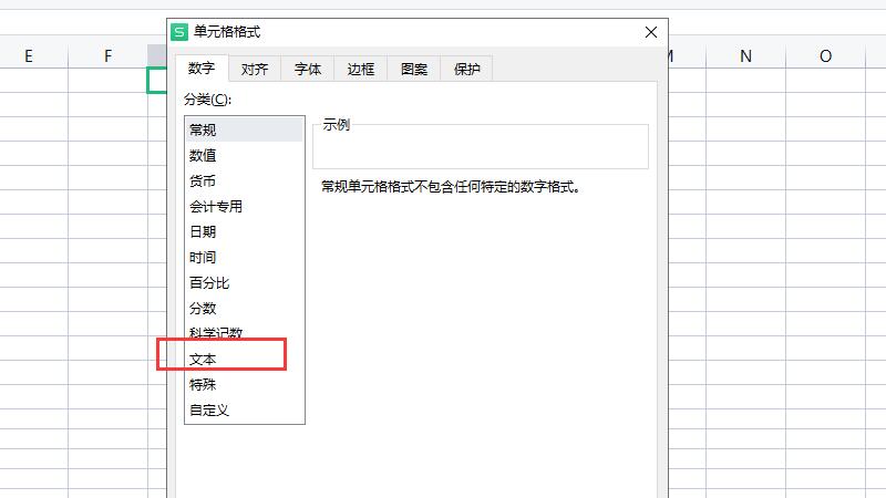 在类别中选择“文本”选项,然后单击“确定”按钮解决问题。