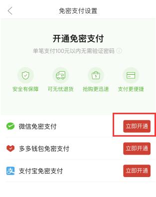 找到微信免密支付,点击“立即开通”按钮。