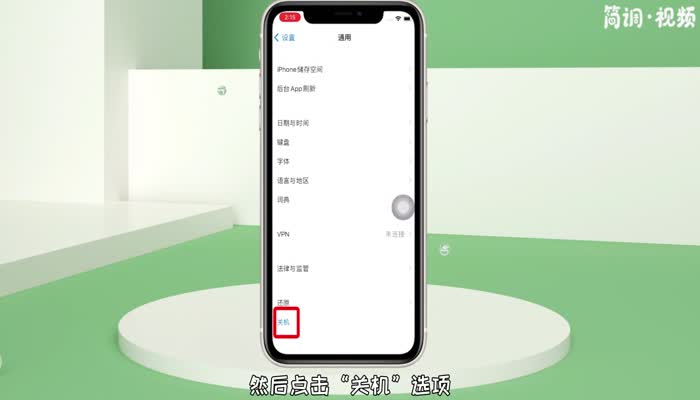 4.将屏幕滑动到页面底部,然后点击“关机”选项;
