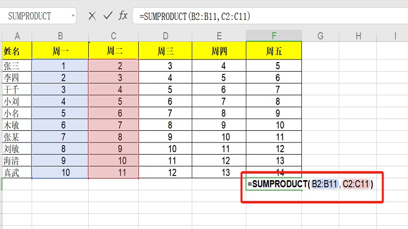 公式=sumproduct (B2:B 11,C23360C 11)可以转换为=SUMPRODUCT (Array 1,Array 2)=1 * 2 2 * 3 3 * 4 4 * 5 * 6 6 * 7 7 * 8 8 * 9 9 * 10 10 * 11=440。