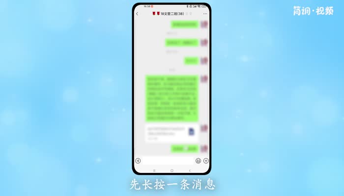 1.打开微信,先在聊天界面按住一条消息,点击“多选”;
