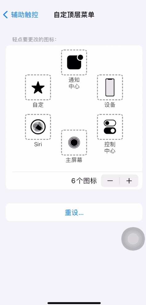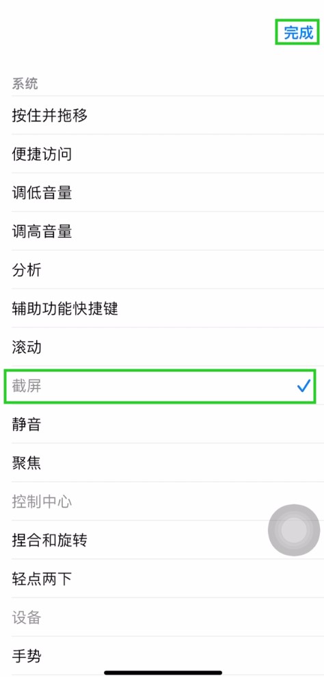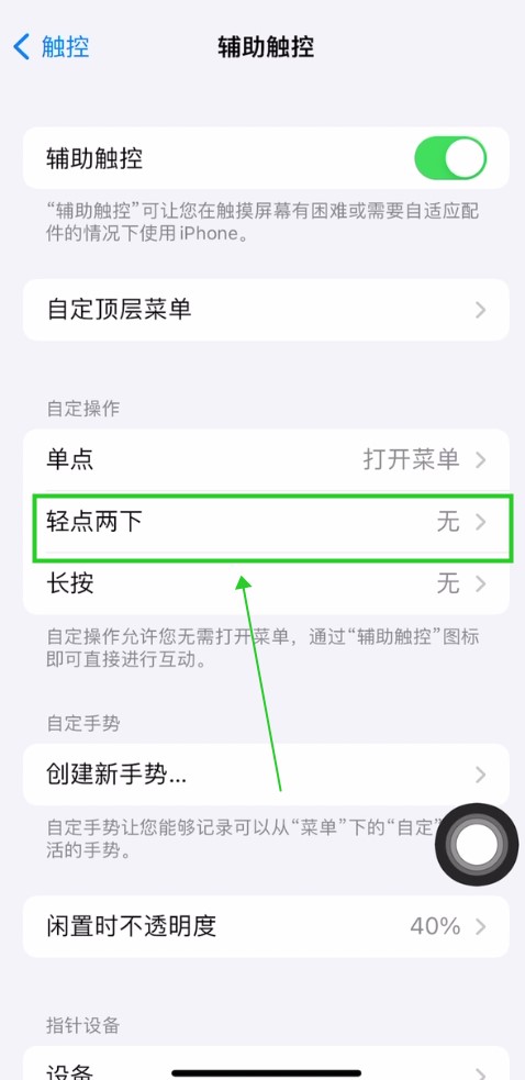 打开辅助触摸按钮,选择以下自定义操作,例如选择两次点击。