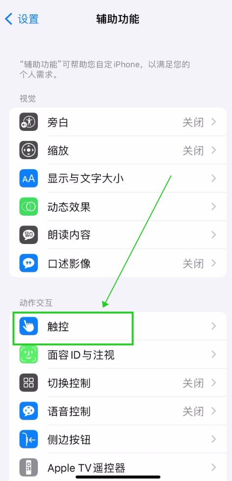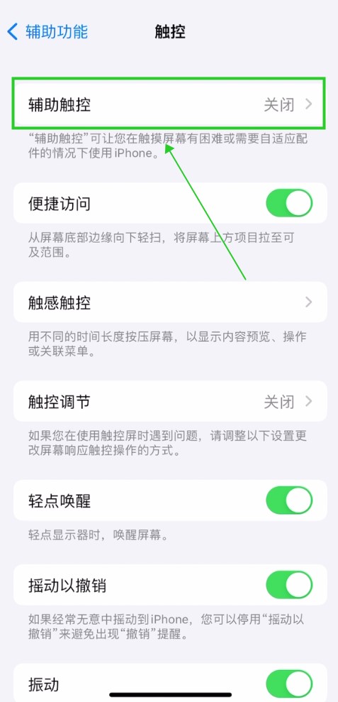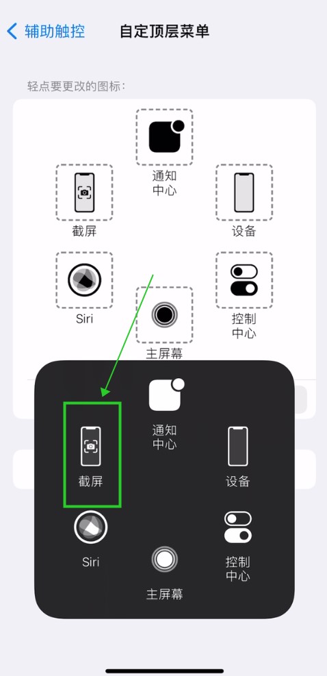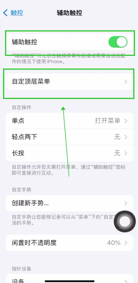 打开辅助触摸按钮,点击自定义顶部菜单。