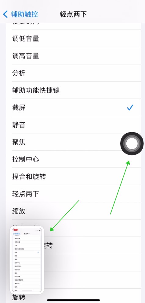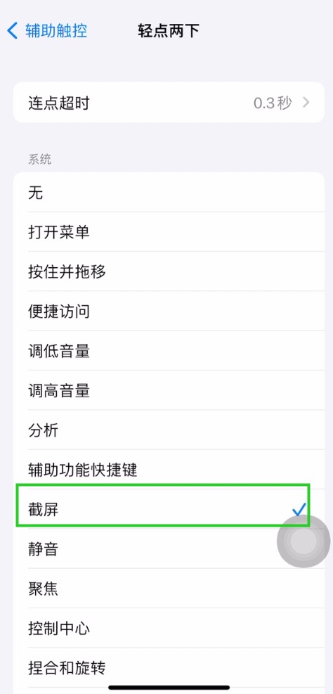 现在点击屏幕上的白色小圆圈两次,以获得快速截图。