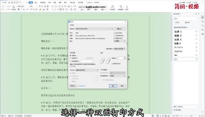 3.在打印设置界面,勾选“双面打印”选项,然后点击其下拉箭头选择双面打印方式;
