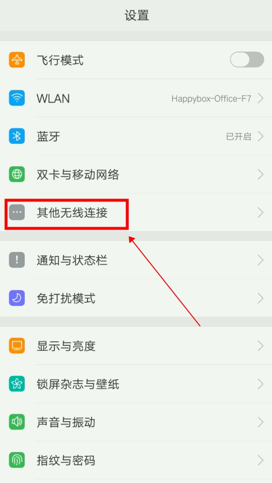 在设置中,点击“其他无线连接”选项。