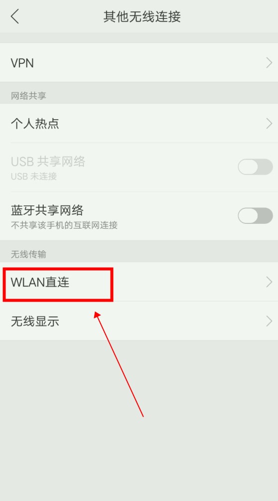 进入其他无线连接界面,点击“WLAN直连”。