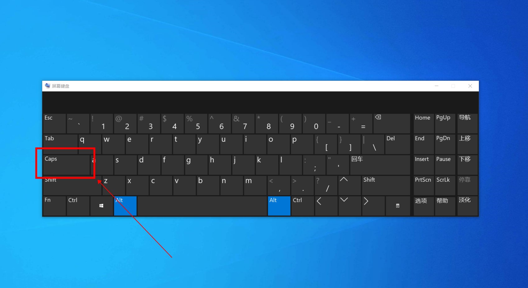 输入法切换后,按键盘上的“Caps Lock”键开启大写。