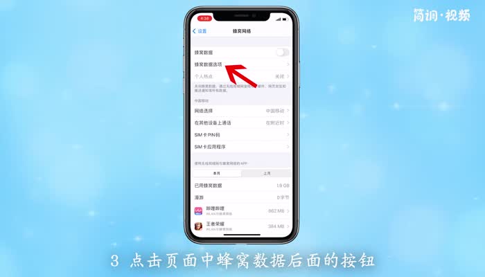 3.点按页面中蜂窝数据后面的按钮以打开蜂窝网络。这样可以下载app