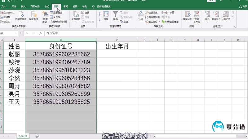 方法选择身份证列,然后选择数据分类。在弹出的窗口中选择一个固定宽度点击下一步,点击出生日期周围的刻度,点击左栏选择是否导入此栏,点击右栏选择同栏,然后点击中间栏点击日期。