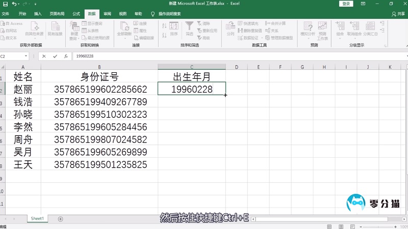 方法二。在第一行输入出生日期,然后按住快捷键Ctrl E。