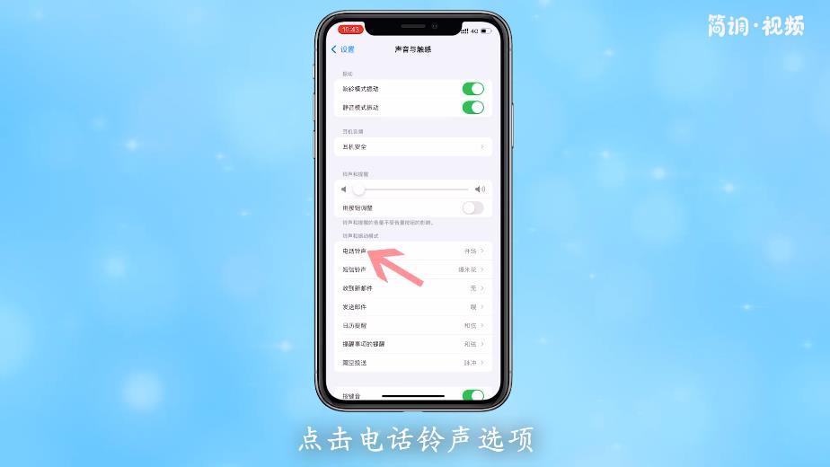 3.在新页面中,以更换铃声为例,点击“铃声”选项进入铃声设置页面;