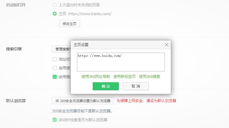 最后,在首页设置中输入需要的网站,比如百度,然后点击确定。