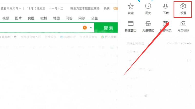 打开浏览器,点击右上角三个栏中的“设置”选项。