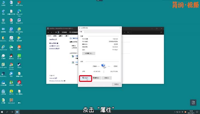 2.进入后点击“以太网”,进入“以太网状态”窗口后点击“属性”;