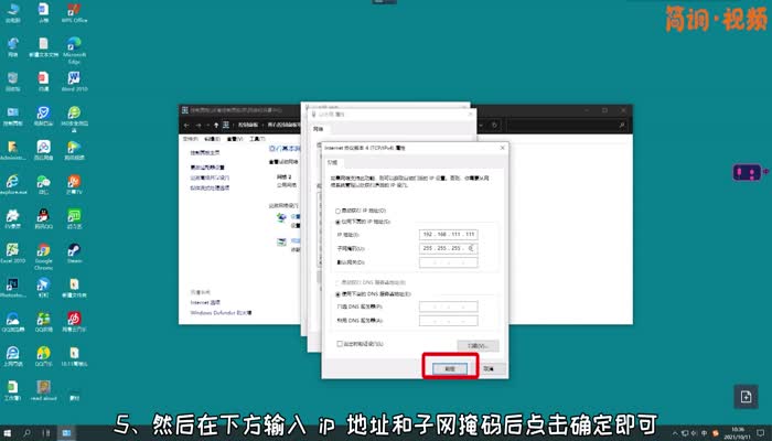 5.然后在下面输入IP地址和子网掩码,并单击确定。