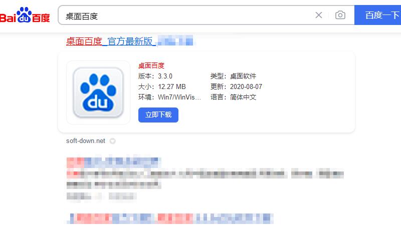 打开浏览器搜索“桌面百度”,选择任意下载页面。