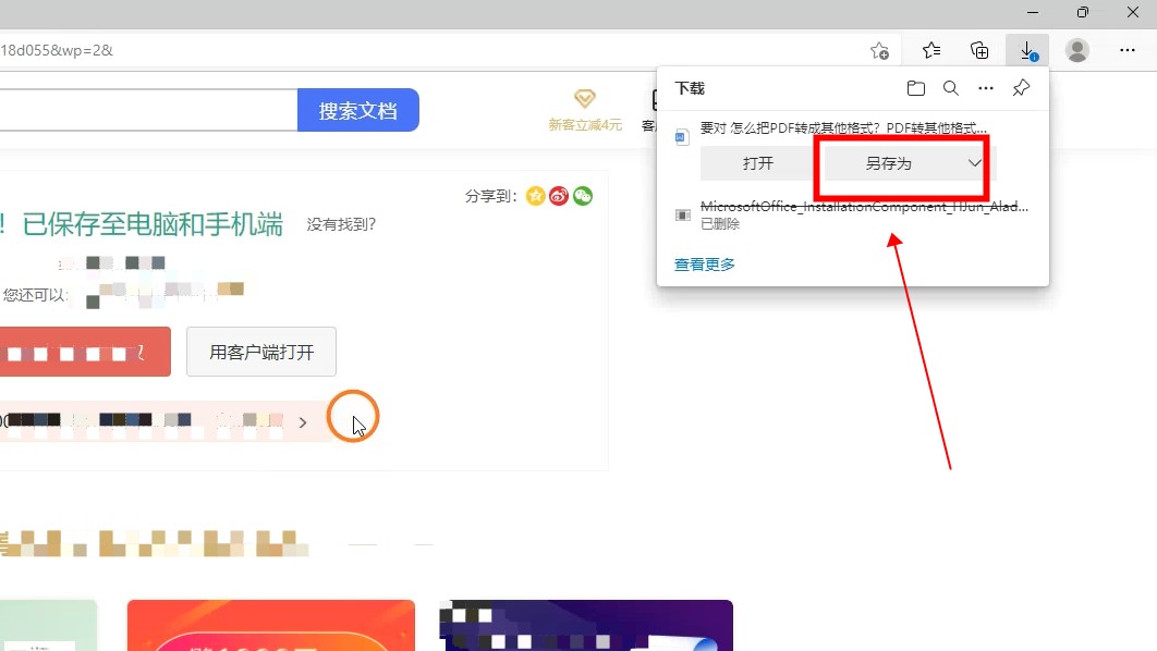 下载文件后,点击右边的“另存为”将文件保存到您的计算机上。