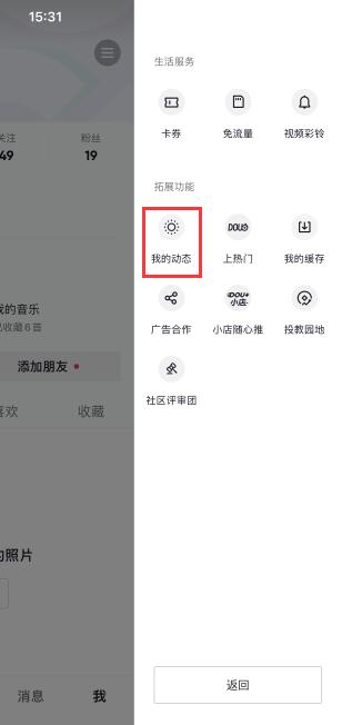 点击个人中心右上角的三个栏可以在更多功能中找到动态Tik Tok,分为以下三个步骤: