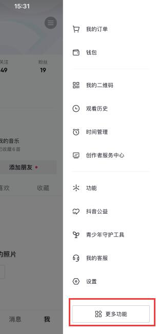 点击“更多功能”选项。