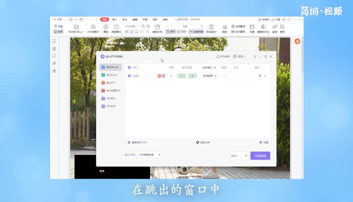4.在文件窗口中,找到“导出pdf为”选项,然后单击“word”选项。在弹出的窗口中,最后点击右下角的“开始转换”。